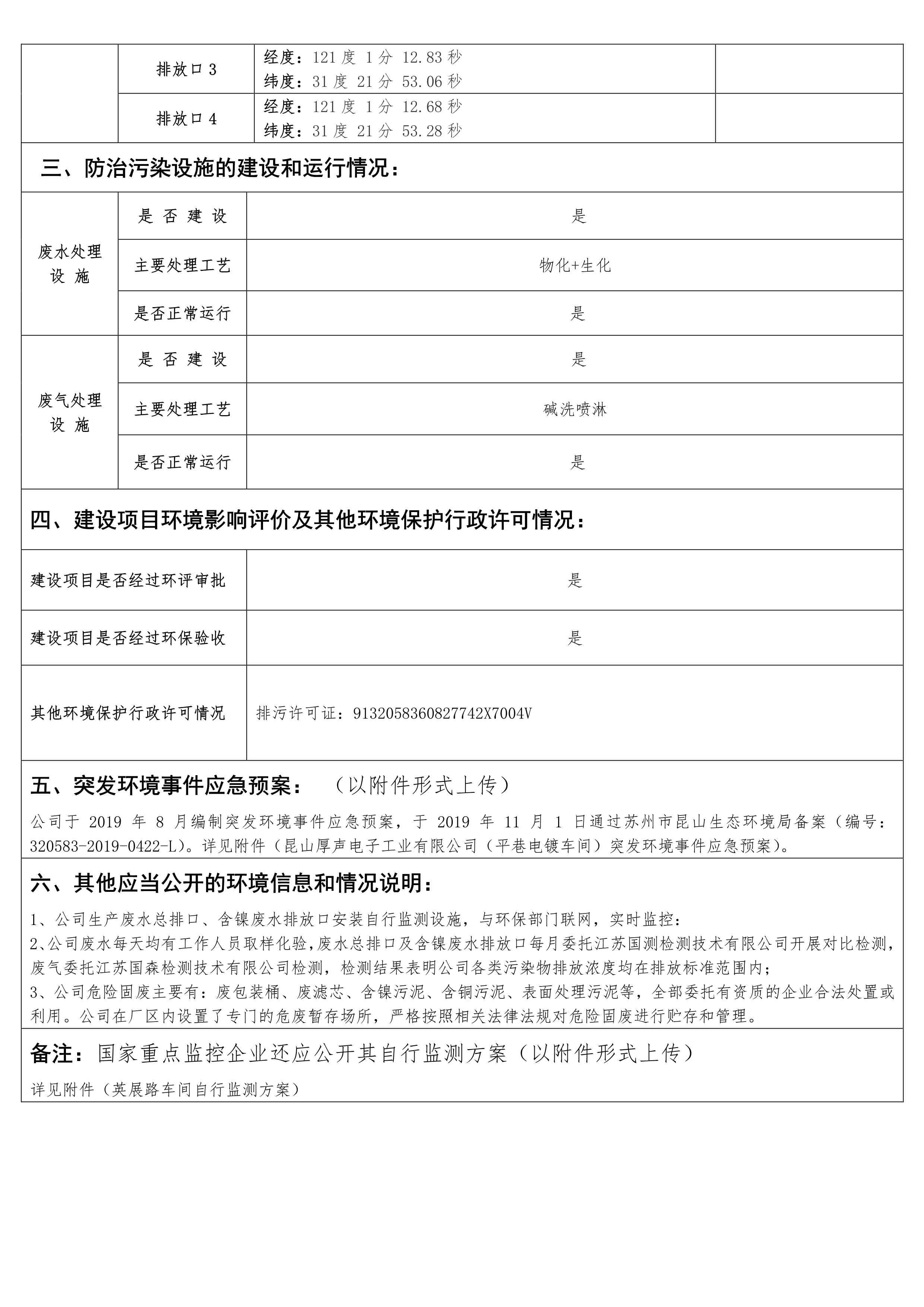 蘇州市重點(diǎn)排污單位環(huán)境信息公開(kāi)表(平巷)