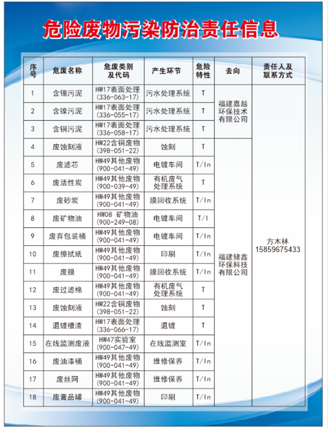 危險(xiǎn)廢物污染防治責(zé)任信息(廈門)